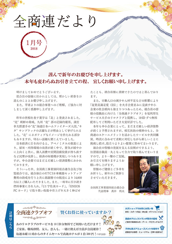 全国商工事業協同組合連合会(略称:全商連)では加盟組合の組合員様向けに設立時から広報紙「全商連だより」を発行しております。