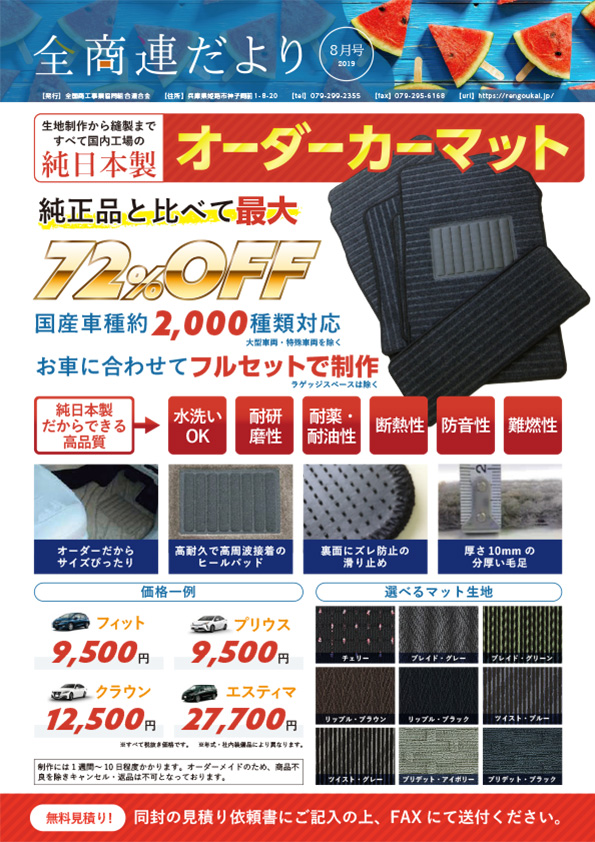 組合員様に現在のいちおし商材や全商連の活動状況、知っておいて損のない情報等を掲載しており、読み応えも十分な内容になっております。 ご興味の頂いた内容につきましては、全商連・各加盟組合に遠慮なくお電話ください。