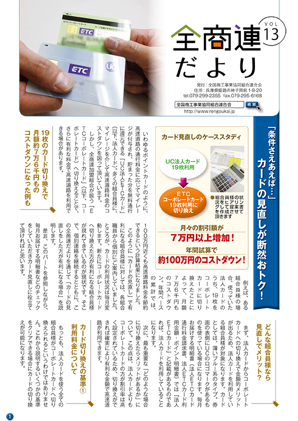 組合員様に現在のいちおし商材や全商連の活動状況、知っておいて損のない情報等を掲載しており、読み応えも十分な内容になっております。 ご興味の頂いた内容につきましては、全商連・各加盟組合に遠慮なくお電話ください。
