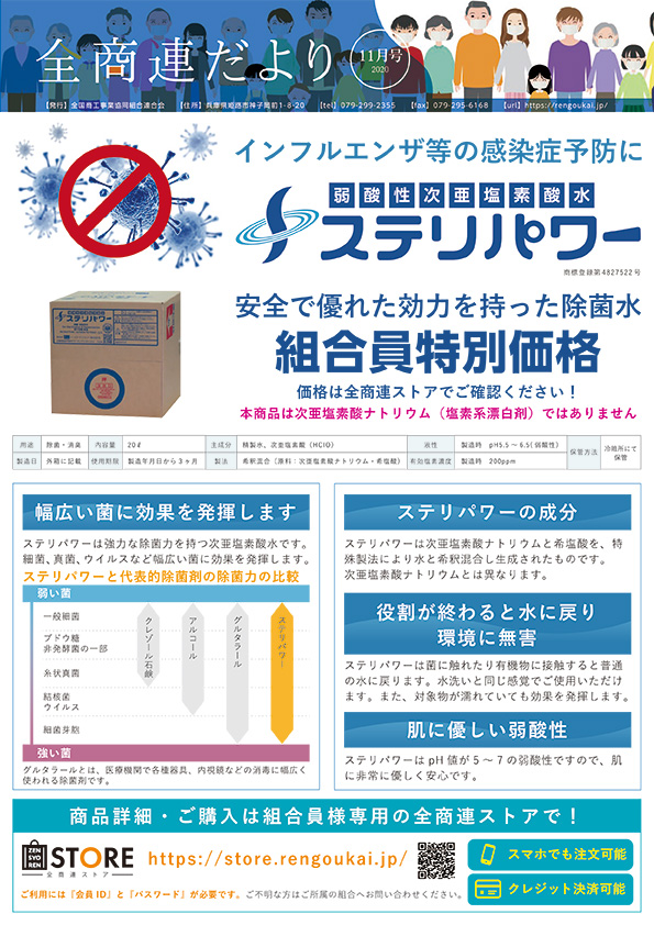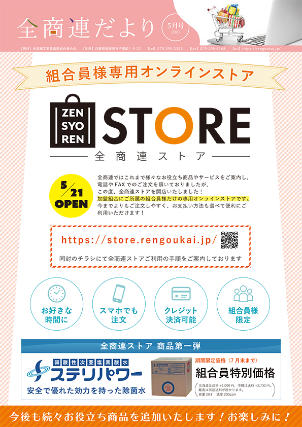 組合員様に現在のいちおし商材や全商連の活動状況、知っておいて損のない情報等を掲載しており、読み応えも十分な内容になっております。 ご興味の頂いた内容につきましては、全商連・各加盟組合に遠慮なくお電話ください。