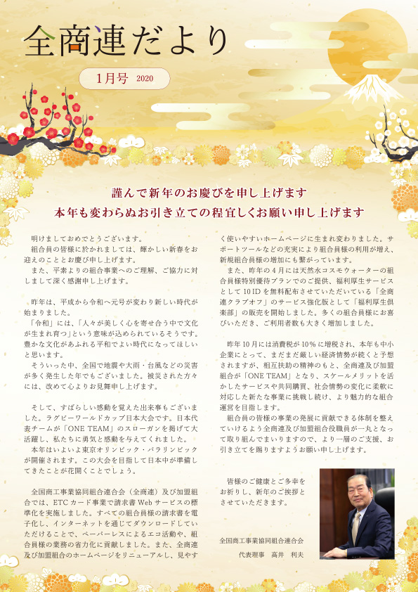 全国商工事業協同組合連合会(略称:全商連)では加盟組合の組合員様向けに設立時から広報紙「全商連だより」を発行しております。