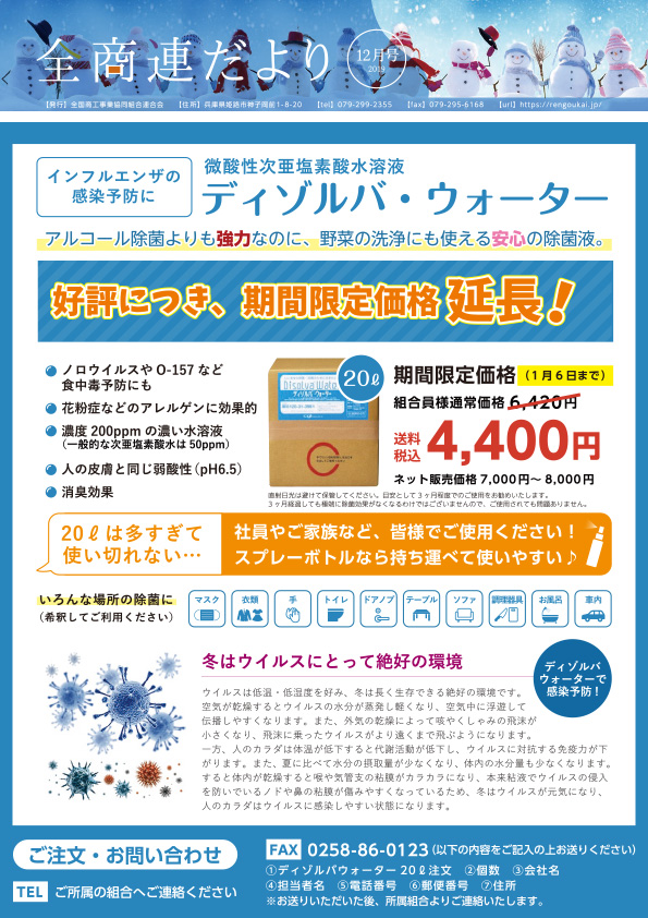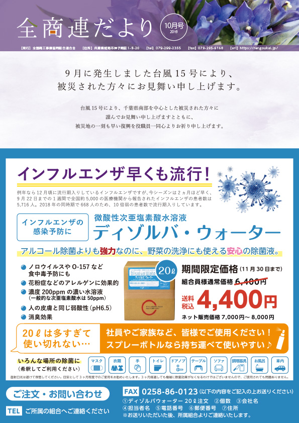 組合員様に現在のいちおし商材や全商連の活動状況、知っておいて損のない情報等を掲載しており、読み応えも十分な内容になっております。 ご興味の頂いた内容につきましては、全商連・各加盟組合に遠慮なくお電話ください。