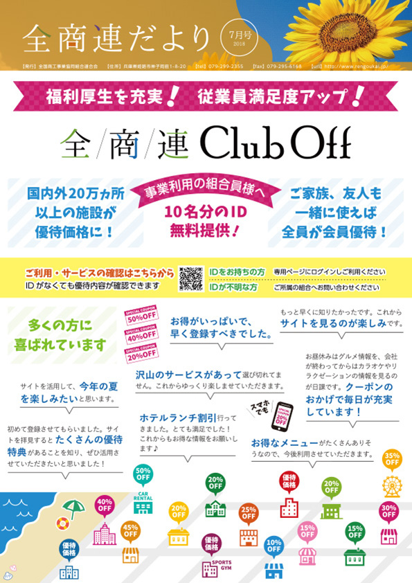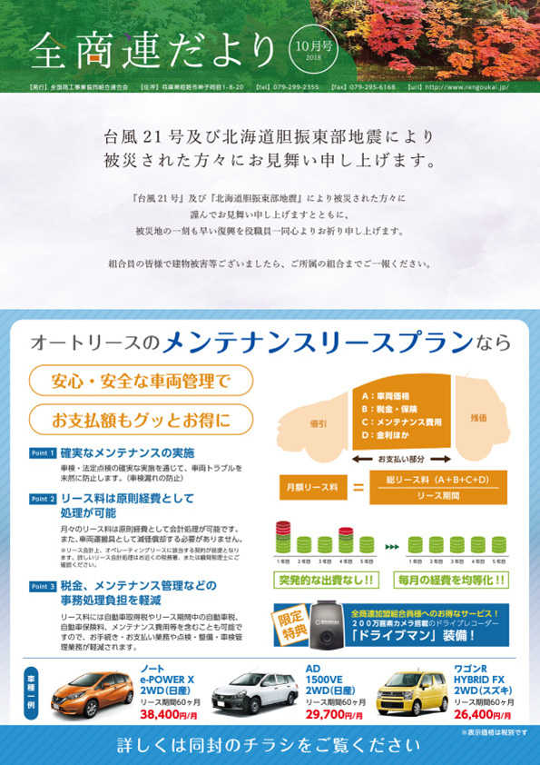 組合員様に現在のいちおし商材や全商連の活動状況、知っておいて損のない情報等を掲載しており、読み応えも十分な内容になっております。 ご興味の頂いた内容につきましては、全商連・各加盟組合に遠慮なくお電話ください。