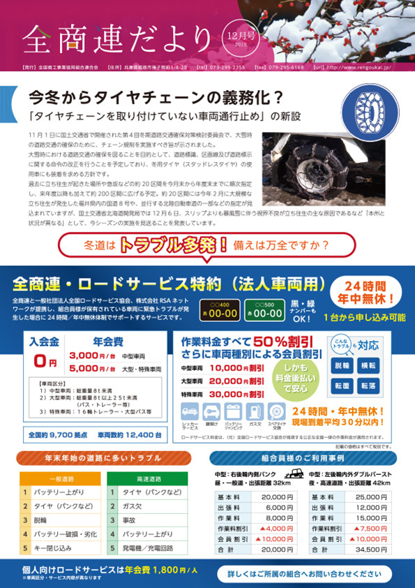 組合員様に現在のいちおし商材や全商連の活動状況、知っておいて損のない情報等を掲載しており、読み応えも十分な内容になっております。 ご興味の頂いた内容につきましては、全商連・各加盟組合に遠慮なくお電話ください。